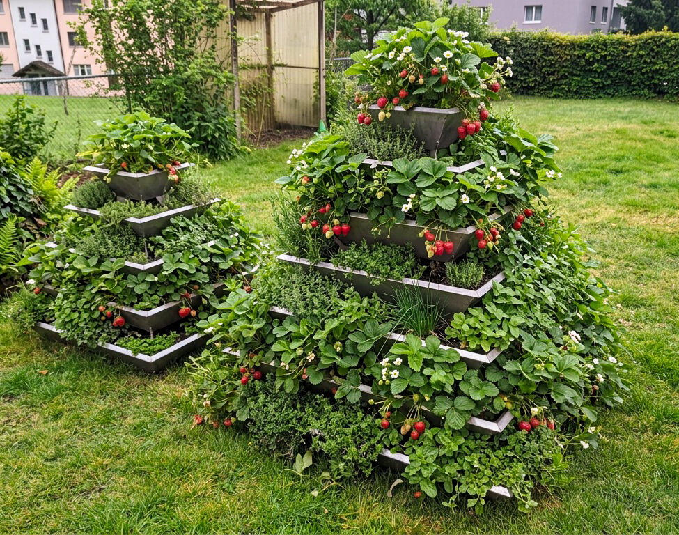 Edelstahl, bietet sie auf minimalem Raum maximale Pflanzvielfalt – von Kräutern über Erdbeeren bis zu kompaktem Gemüse.